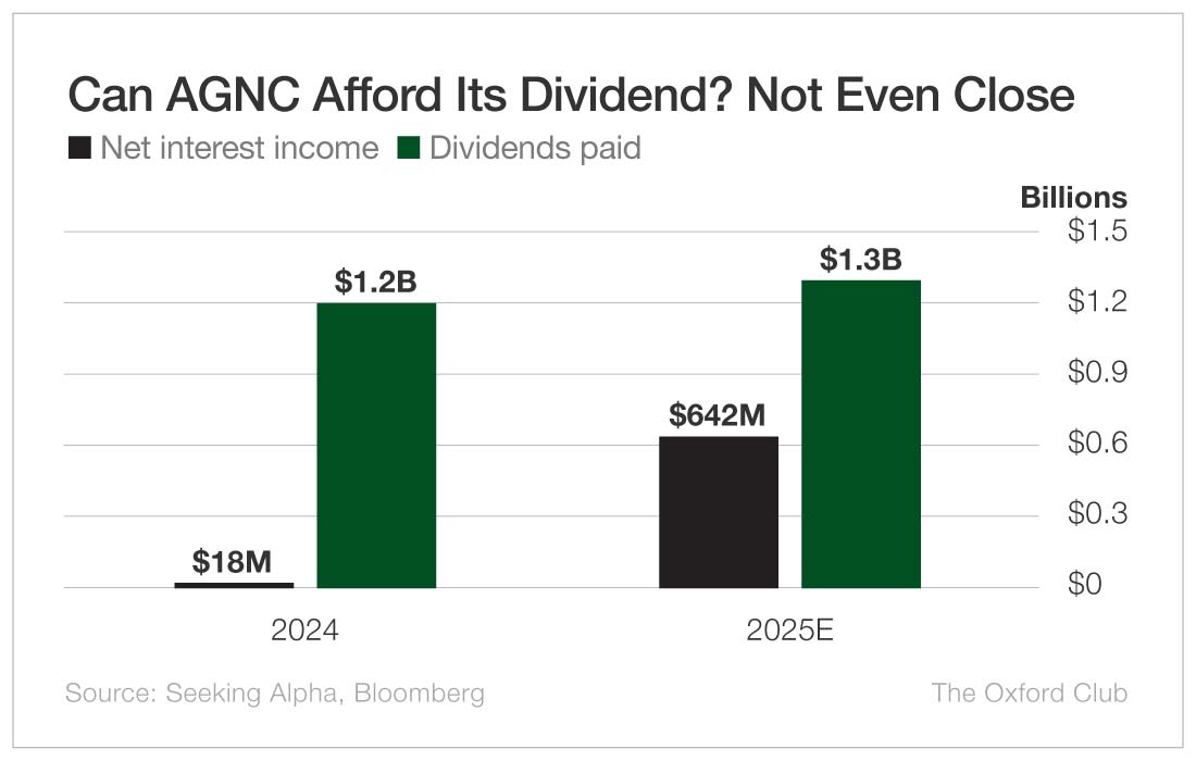 At the time, AGNC was coming off of a year with negative net interest income (NII), the measure of cash flow that we use for mortgage REITs. It was expected to post another negative number in 2024.