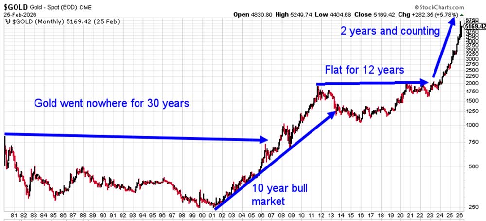 But we are likely in the early years of a long gold bull market. Having gold exposure will be an important part of growing your wealth and protecting your portfolio over the next several years.